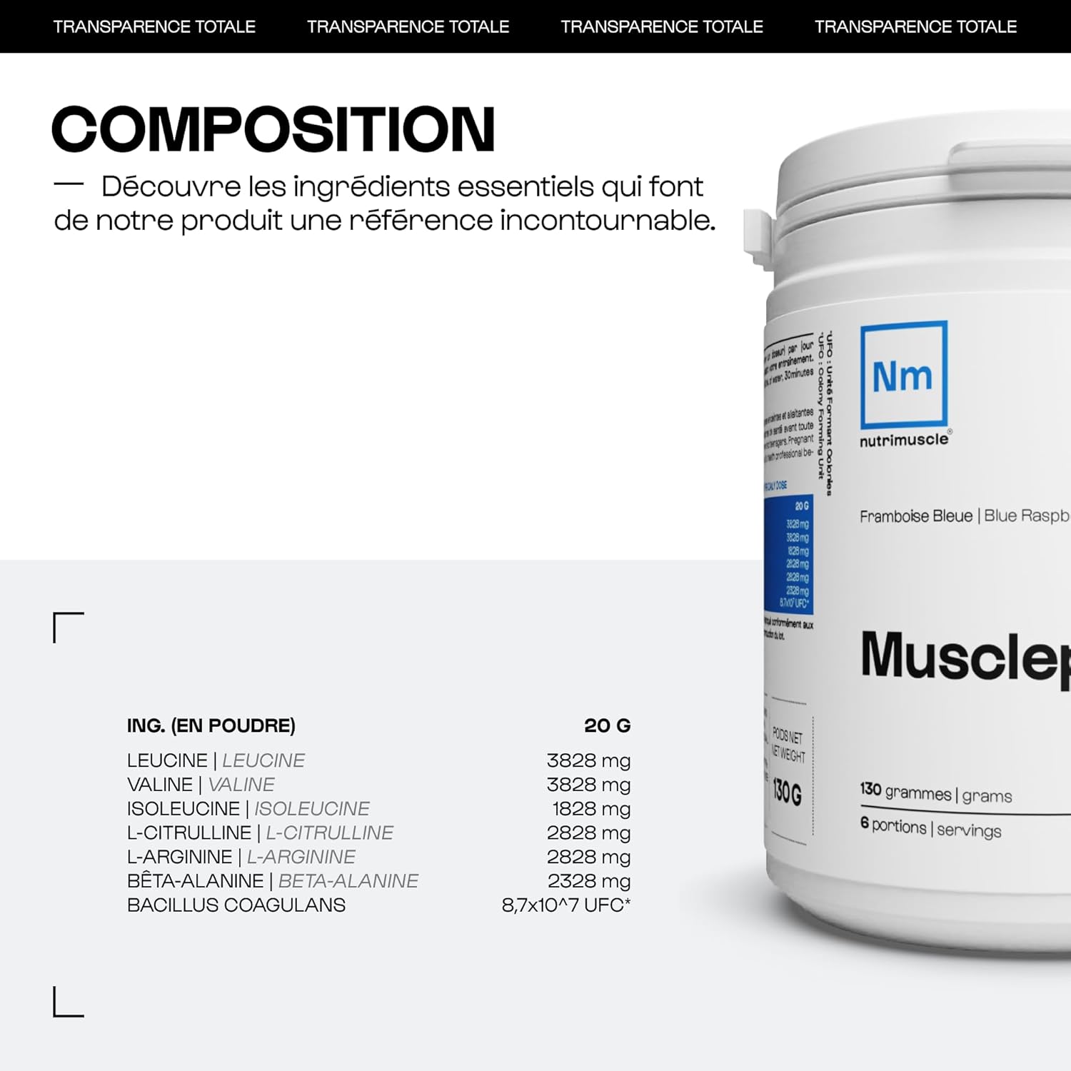 - Formule Puissante : Mélange synergique de BCAA 2.1.2, arginine, citrulline et bêta-alanine pour des performances optimales.