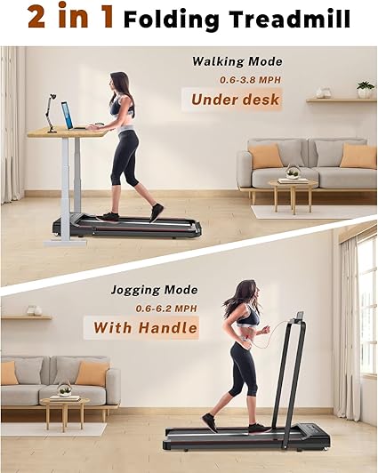 Repoussez vos limites avec le Tapis de Course Pliable 2 en 1 , parfait pour un entraînement cardio intense ou une marche rapide, à la maison ou au bureau.