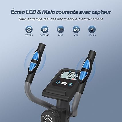 - Suivi connecté : Écran LCD (vitesse, distance, temps, calories, pouls) et appli MERACH pour analyser vos performances.